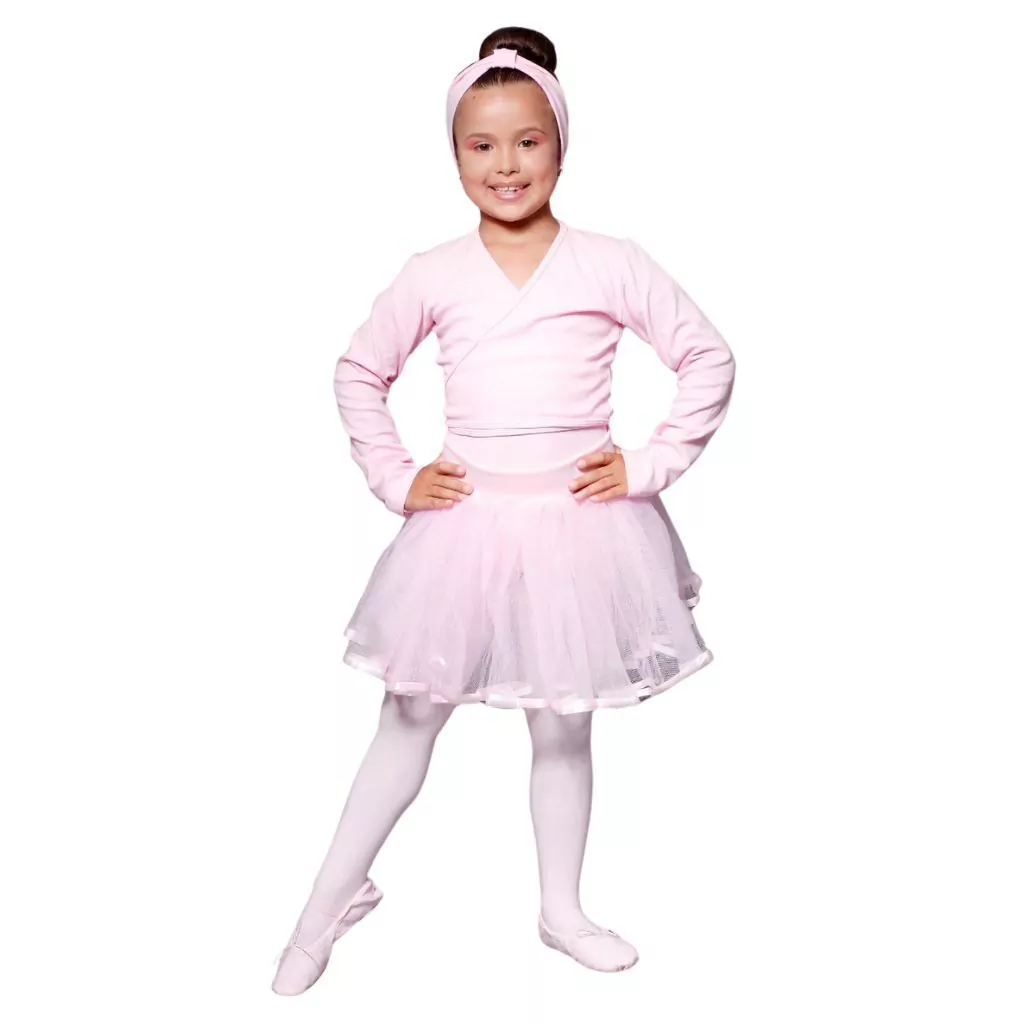 Saia Básica Infantil de Tule com Cós EláStico produzida em Helanca Light preta ou rosa.