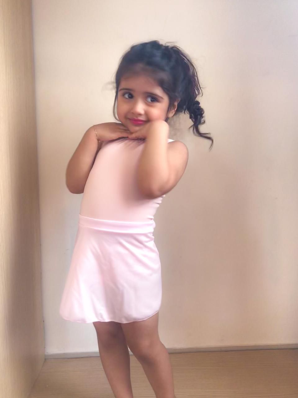 Saia Básica Infantil Transpassada de amarrar produzida em Helanca Light preta ou rosa, ou em outras opções de cores, para consultar a disponibilidade acione nosso WhatsApp (11991997690).